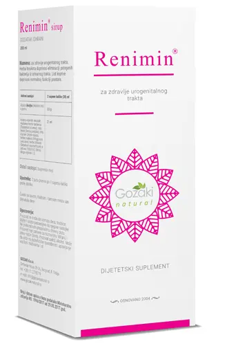 Renimin® je preparat u obliku sirupa i koristi se za očuvanje zdravlja bubrega i mokraćnih kanala. Proizvod je napravljen u tečnom obliku jer je takav lakši za apsorpciju i mnogo efikasniji od suplemenata u kapsulama. Ovaj izuzetan sirup svojim izbalansiranim sastavom omogućava antibakterijski i antizapaljenski efekat na ovom sistemu. Doprinosi eliminaciji patogenih bakterija iz urinarnog trakta. Koristi se kao irigaciona terapija inflamatornih bolesti donjeg urinarnog trakta i doprinosi normalnoj funkciji prostate. Povećava količinu izlučene mokraće i pomaže ispiranje mokraćnih puteva. Ovaj sirup je potpuno prirodan, neškodljiv i bezbedan za upotrebu. Proizvod je registrovan u Ministarstvu zdravlja R. Srbije i na tržištu se nalazi od 2004. godine. Broj i datum upisa u bazu podataka Ministarstva zdravlja R.S.: 1996/2022 od 29.05.2022. godine.